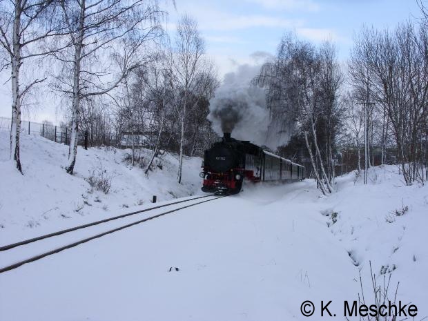 Schmalspurbahn die Wintersportler mit Dampfzügen und historischen